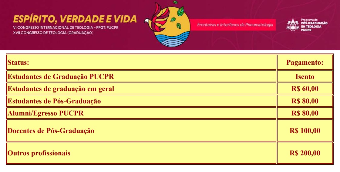 INSCRIÇÕES PARA O VI CONGRESSO INTERNACIONAL DE TEOLOGIA PPGT / XVII CONGRESSO DE TEOLOGIA